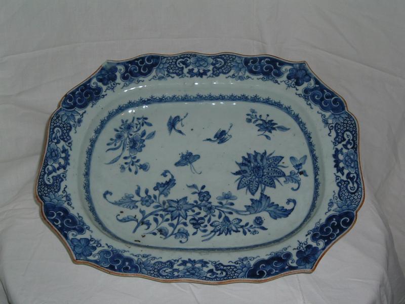 Grand présentoir de soupière de forme lobée en porcelaine décorée en bleu sous couverte d'un couple de grues et papillons survolant des fleurs de lotus stylisées, compagnie des Indes. XVIIIeme Epoque Qianlong(1736-1795) |