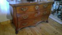 Commode malouine en chene d'époque XVIIIeme, trois tiroirs, dessus bois, commode galbée toutes faces, ayant tous ses fonds de propreté. |